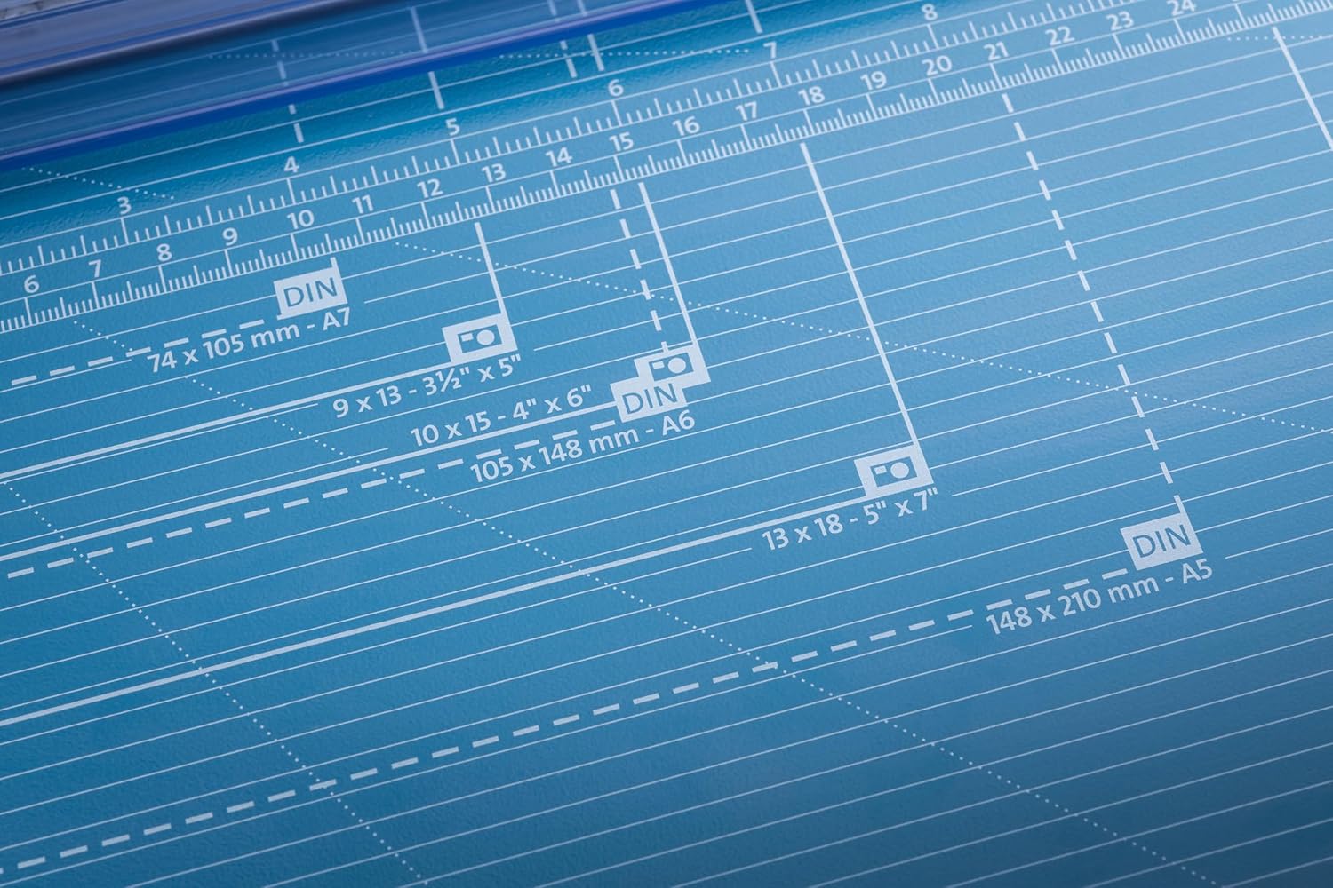 • Helpful format lines on the base with mm division along the cutting edge make aligning the material to be cut even easier